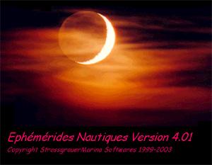 Ephémérides nautiques informatiques AVERTISSEMENT : Ce logiciel ne peut remplacer les éphémérides nautiques officiellesIl permet d éditer ou consulter la totalité des documents nécessaires à l'élaboration du point astro, au calcul de l'estime et de la route orthodromique... il propose en outre des calculs d'astronomie type corrigés ce qui peut être un outil utile pour s'entrainer aux calculs astronomiques Ceci comprend donc les tables de passage au méridien de Greenwich pour la Lune, le Soleil, les étoiles, Vénus, Mars Jupiter et Saturne, les tables donnant les phases de la Lune, les tables donnant la visibilité des planètes, les éphémérides quotidiennes pour le Soleil, la Lune, les étoiles, Vénus, Mars Jupiter et Saturne, ainsi que les heures et azimuts au coucher et au lever pour la Lune et le Soleil, les tables spéciales pour l'étoile Polaire, un catalogue d'étoiles, les tables de Dieumegard et Bataille, les tables d'interpolation, les tables d'estime et les canevas de Mercator. |